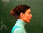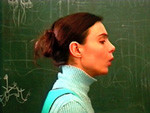hanging around the mountain Installation mit 3 Videoprojektionen und dem Rollenden Berg Jodlerin Video loop 3:50min Die Jodlerin erzeugt durch Stimme und Bewegung ein technisches Echo durch Rückkopplung.