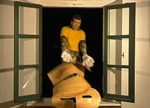 Performancetape Beim windowword wird das there auf unterschiedliche Weise, mehrmals hintereinander, durch ein Fenster aus dem Aussenraum nach Innen transportiert. |