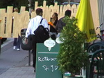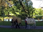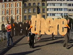 Die Worte inbetween, here, there werden durch den öffentlichen Raum transportiert und inszeniert.